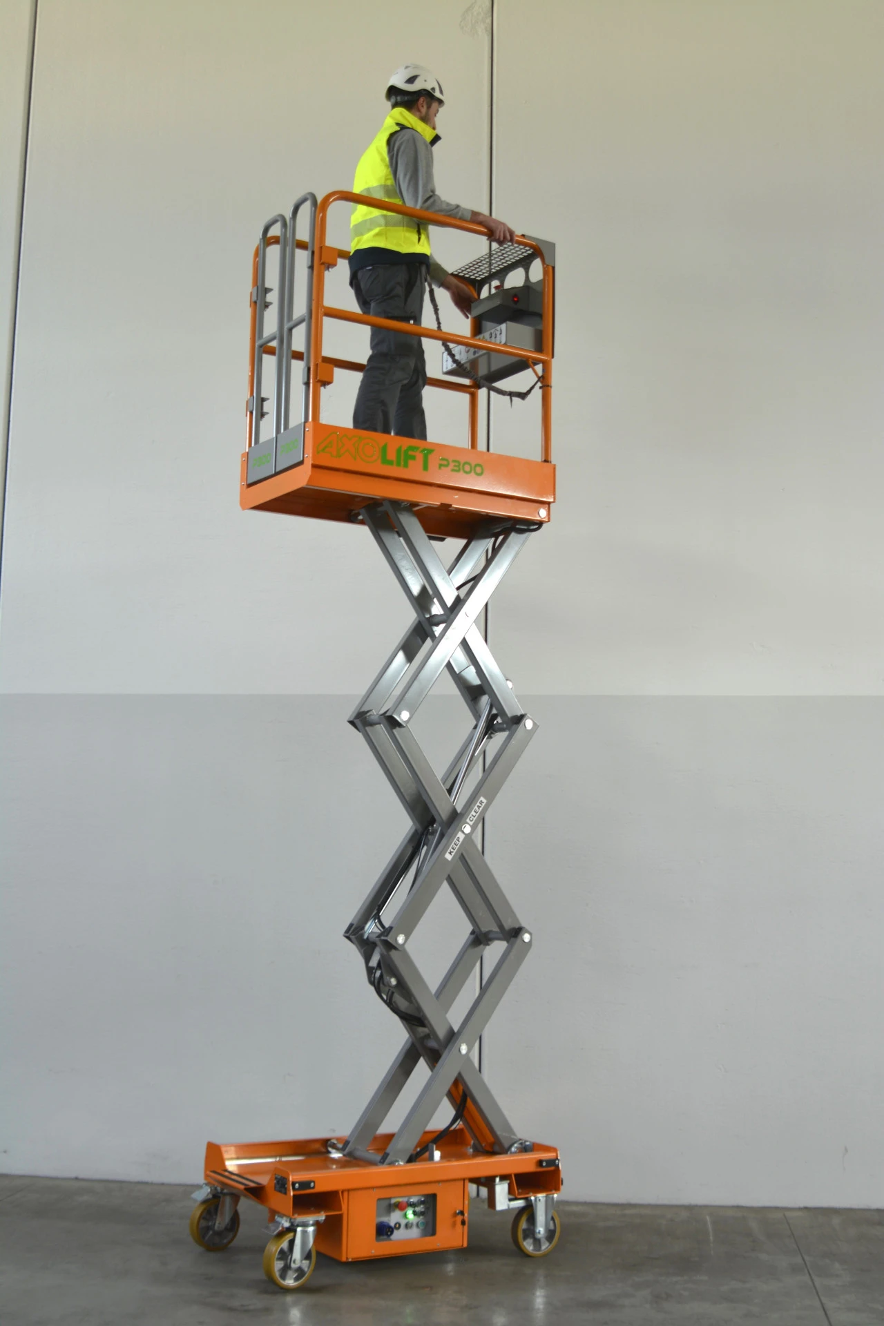With AXOLIFT P300 it is no longer necessary to mount and dismount a tower scaffolding, for example. You just need to position the platform, step onto it, choose which is the best height suited to do your job using the movement joystick