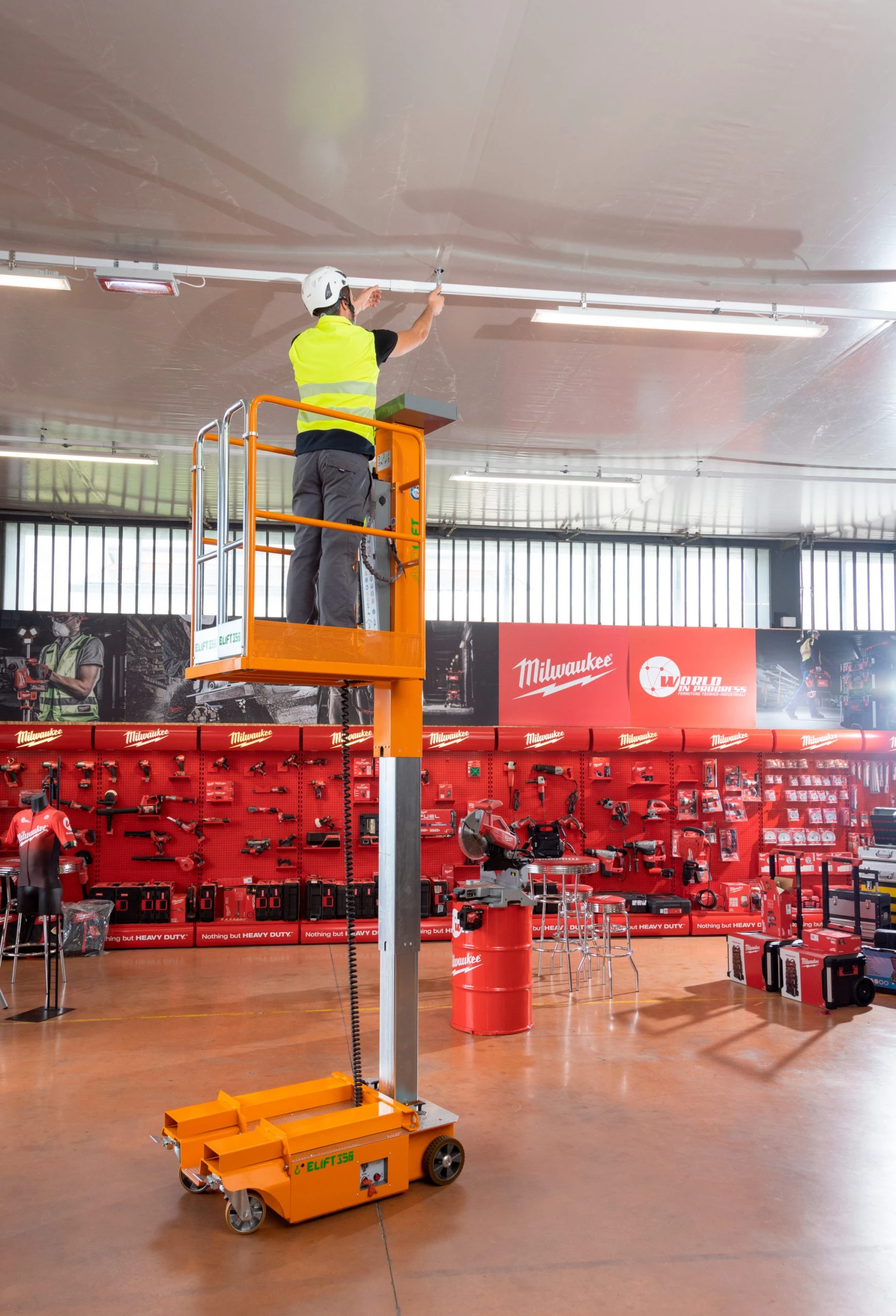 With ELIFT 350 it is no longer necessary to mount and dismount a tower scaffolding, for example. You just need to position the platform, step onto it, choose which is the best height suited to do your job using the movement joystick